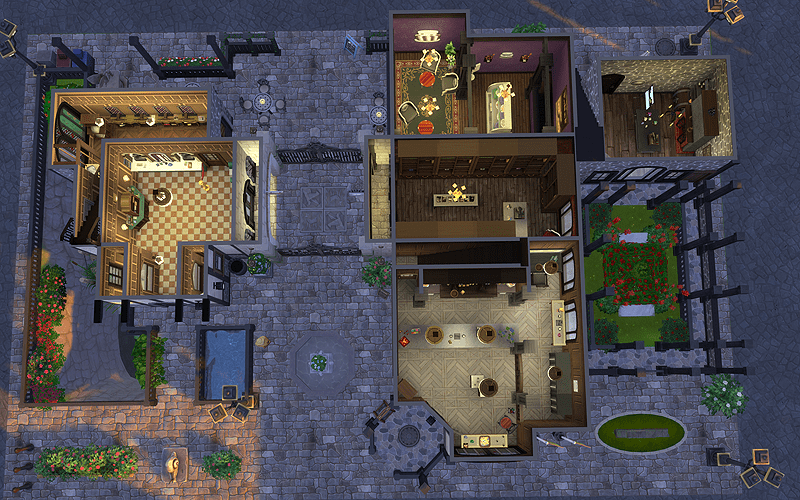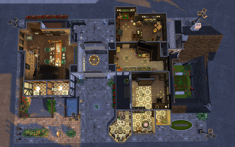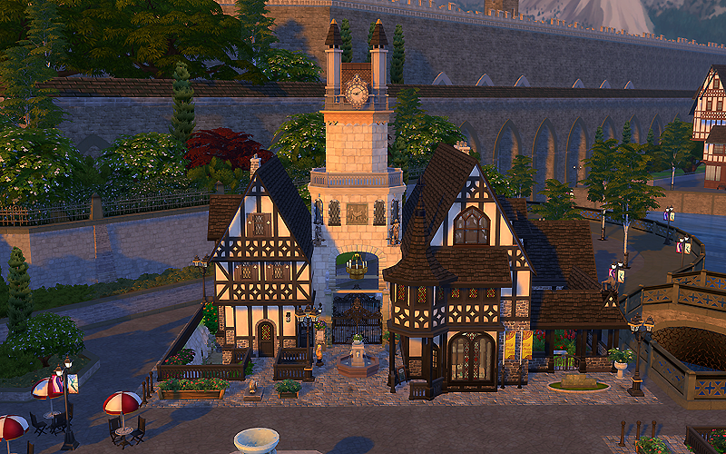 Welcome to Windenburg square. In Clock Tower Alley you’ll find the local pharmacy and a post office. Further down there is the bookshop and the bakery, just follow your nose. And for some special needs there is also a shop for minerals, crystals and elements. Enjoy