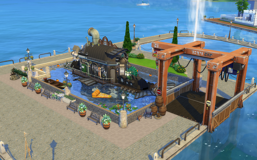 The Black Baracuda is a steampunk submarine. On the upper floor there is a community room, which is perfect to discuss and develop new ideas and drink a couple of nectar juices. Downstairs there is a little apartment for the owner. Beware of the deathtraps if you sneak around without permission!